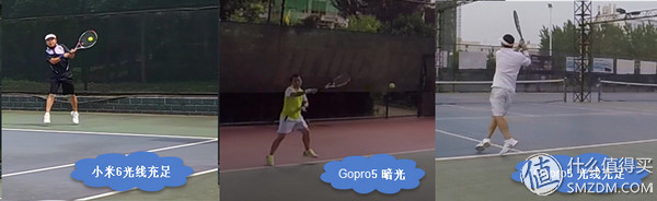 The following is a comparison of three video screenshots: The middle one was taken at 5 pm in the summer. The actual light is very good, but the stadium has a roof covering the light, and the effect is rather poor. On the far right side, GoPro's performance is acceptable in well-lit conditions, but the resolution is still a little worse than the mobile phone (left one).